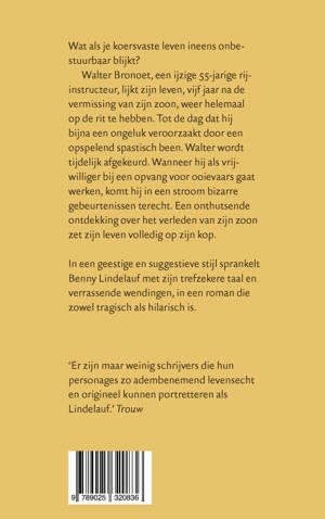 In een geestige en suggestieve stijl sprankelt Benny Lindelauf met zijn trefzekere taal en verrassende wendingen, in een roman die zowel tragisch als hilarisch is.
