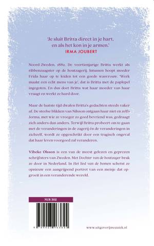 'Het lied van de bomen' is het tweede deel in de historische romanserie 'De kronieken van Britta Eriksson' van Vibeke Olsson. Noord-Zweden, 1882. De veertienjarige Britta werkt als ribbenzaagster op de houtzagerij, terwijl haar moeder haar ook opleidt tot wasvrouw. Werk gaat voor alles en God waakt over alles, krijgt Britta met de paplepel ingegoten. Maar ze merkt dat haar gedachten steeds vaker afdwalen. Waarom kijkt Nilsson haar zo vreemd aan? En waarom doet haar maatje Jorma zo anders dan anders? Dan gebeurt er een tragisch ongeval, waardoor Britta's leven nooit meer hetzelfde zal zijn.