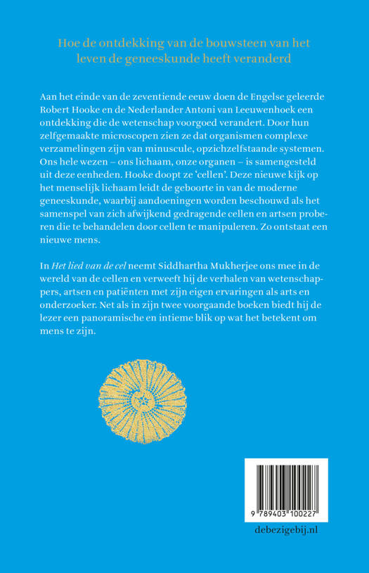In Het lied van de cel neemt Siddhartha Mukherjee ons mee in de wereld van de cellen en verweeft hij de verhalen van wetenschappers, artsen en patiënten met zijn eigen ervaringen als arts en onderzoeker. Net als in zijn twee voorgaande boeken biedt hij de lezer een panoramische én intieme blik op wat het betekent om mens te zijn.