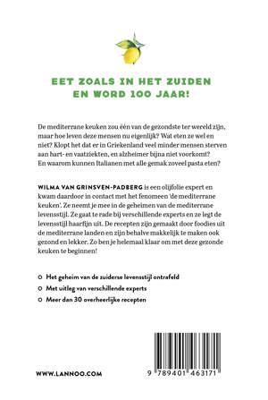 Wilma Van Grinsven-Padberg is een olijfolie expert en kwam daardoor in contact met het fenomeen 'de mediterrane keuken'. Ze neemt je mee in de geheimen van de mediterrane levensstijl. Ze gaat te rade bij verschillende experts en ze legt de levensstijl haarfijn uit. De recepten zijn gemaakt door foodies uit de mediterrane landen en zijn behalve makkelijk te maken ook gezond en lekker. Zo ben je helemaal klaar om met deze gezondekeuken te beginnen!