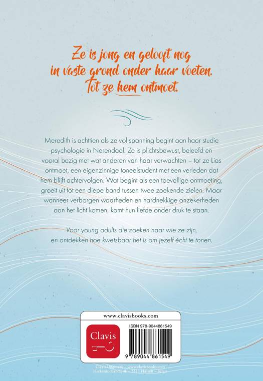 Meredith is achttien als ze vol spanning begint aan haar studie psychologie in Nederdaal. Ze is plichtsbewust, beleefd en vooral bezig met wat anderen van haar verwachten – tot ze Lias ontmoet, een eigenzinnige toneelstudent met een verleden dat hem blijft achtervolgen. Wat begint als een toevallige ontmoeting groeit uit tot een diepe band tussen twee zoekende zielen. Maar wanneer verborgen waarheden en hardnekkige onzekerheden aan het licht komen, komt hun liefde onder druk te staan.