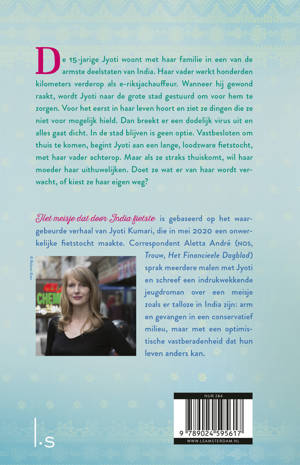 Journalist Aletta André was geraakt door het verhaal van Jyoti Kumari en schreef een aangrijpende jeugdroman over het meisje dat een onwerkelijke fietstocht maakte en iedereen over de hele wereld inspireerde. Tegelijk snijdt Aletta actuele thema’s aan als armoede, het kastesysteem en de positie van meisjes.