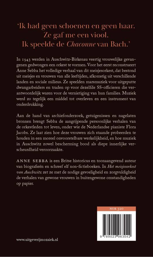 Welke rol kon muziek vervullen in een vernietigingskamp? Hoe was het voor deze vrouwen om deel uit te maken van een orkest dat niet alleen diende als propagandamiddel, maar ook troost bood aan de moordenaars van hun familie en vrienden? Sebba baseert zich op uitgebreid archiefonderzoek en gesprekken met overlevenden, waaronder met de Nederlandse pianiste Flora Jacobs. Zo probeert ze een antwoord te vinden op deze aangrijpende vragen en laat ze zien hoe muziek in Auschwitz zowel een middel tot overleven als een pijnlijke vorm van onderdrukking werd.