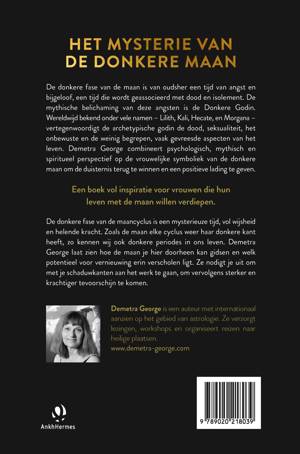 In Het mysterie van de donkere maan belicht Demetra George de spannende, donkere fase van de maancyclus. Een fase die erop wacht om in het licht te worden gezet; een mysterieuze tijd, vol wijsheid en helende kracht. Zoals de maan elke cyclus weer haar donkere fase heeft, zo kennen wij ook donkere periodes in ons leven.