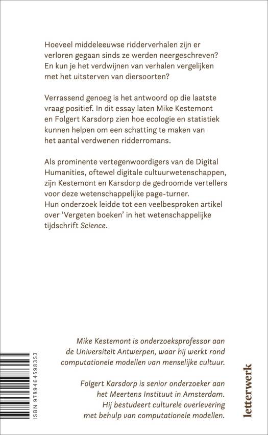 Verrassend genoeg is het antwoord op die laatste vraag positief. In dit essay laten Mike Kestemont en Folgert Karsdorp zien hoe ecologie en statistiek kunnen helpen om een schatting te maken van het aantal verdwenen ridderromans.