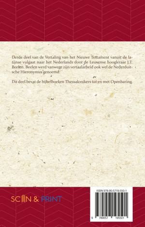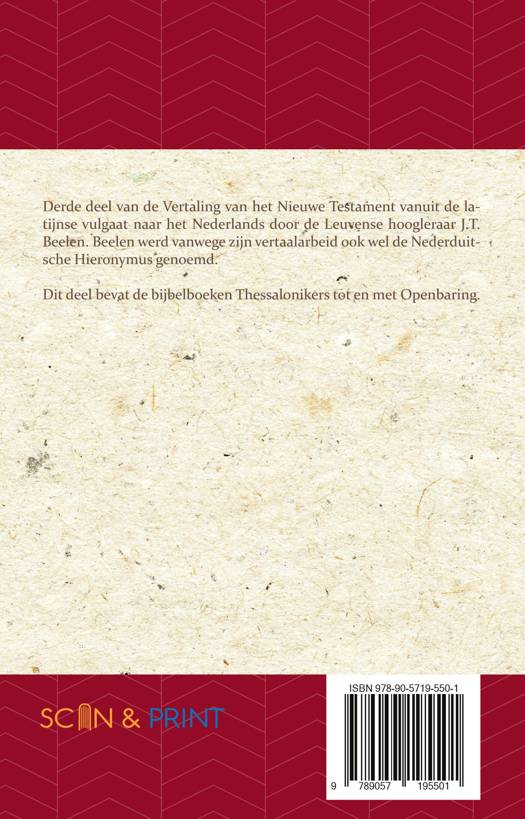 Derde deel van de Vertaling van het Nieuwe Testament vanuit de latijnse vulgaat naar het Nederlands door de Leuvense hoogleraar J.T. Beelen. Beelen werd vanwege zijn vertaalarbeid ook wel de Nederduitsche Hieronymus genoemd.