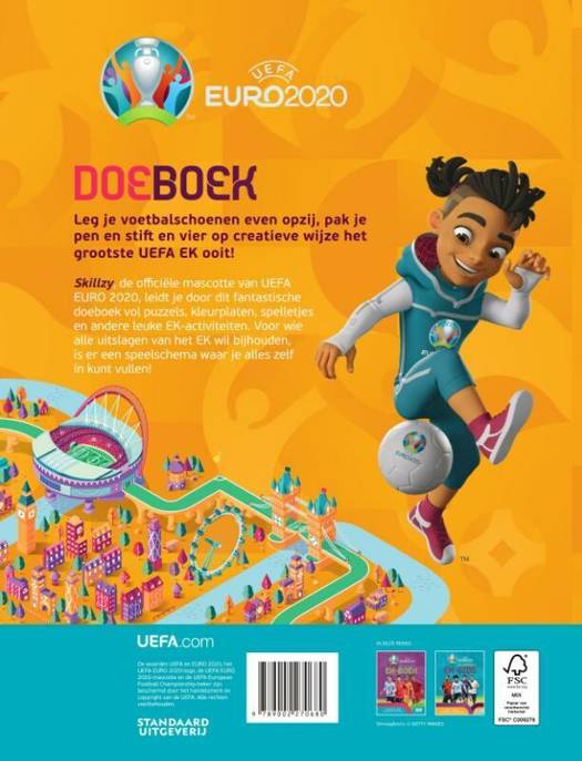 Skillzy, de officiële mascotte van UEFA EURO 2020, leidt je door dit fantastische doeboek vol puzzels, kleurplaten, spelletjes en andere leuke EK-activiteiten. Voor wie alle uitslagen van het EK wil bijhouden, is er een speelschema waar je alles zelf in kunt vullen!