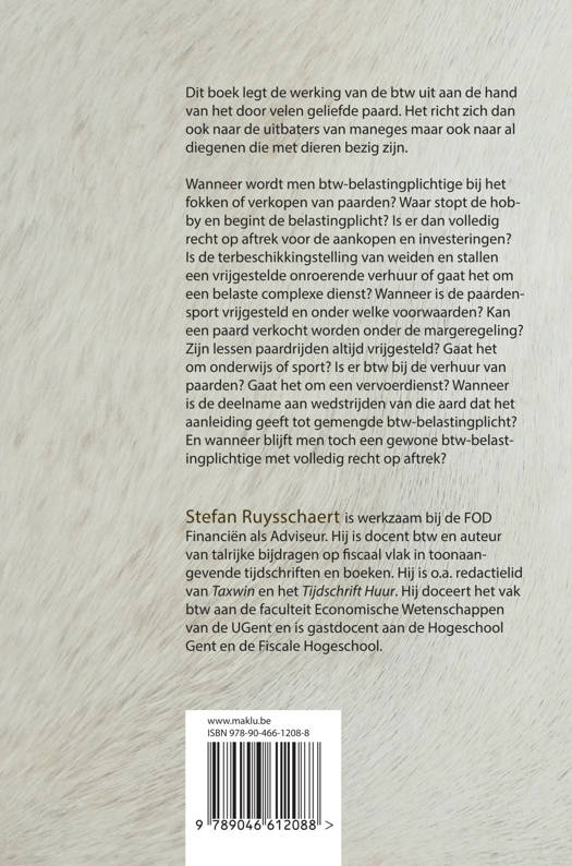 Dit boek legt de werking van de btw uit aan de hand van het door velen geliefde paard. Het richt zich dan ook naar de uitbaters van maneges maar ook naar al diegenen die met dieren bezig zijn.