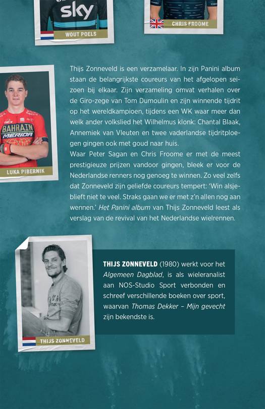 Het Panini-album van Thijs Zonneveld bevat de beste verhalen over het wielerseizoen. Een seizoen waarin de Nederlandse renners weer volledig meereden om de prijzen. Ert is sprake van een ware revival onder aanvoering van Tom Dumoulin. Zonneveld ontdekt naast het huidige succes ook een brede basis voor de toekomst en wijst de lezer op de talenten en ontwikkelingen in de sport.