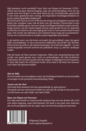 Wat betekent recht werkelijk? Voor Paul van Nispen tot Sevenaer (1935–2024) was het geen abstract begrip, maar een levenshouding: recht als ‘de goede orde der dingen’. In dit boek deelt hij zijn rechtsfilosofie, geworteld in een leven getekend door oorlog, een bijzondere familiegeschiedenis en grote maatschappelijke daadkracht.
