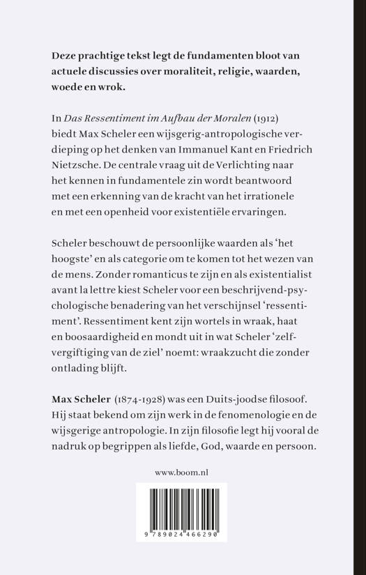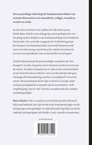In Das Ressentiment im Aufbau der Moralen (1912) biedt Max Scheler een wijsgerig-antropologische verdieping op het denken van Immanuel Kant en Friedrich Nietzsche. De centrale vraag uit de Verlichting naar het kennen in fundamentele zin wordt beantwoord met een erkenning van de kracht van het irrationele en met een openheid voor existentiële ervaringen.