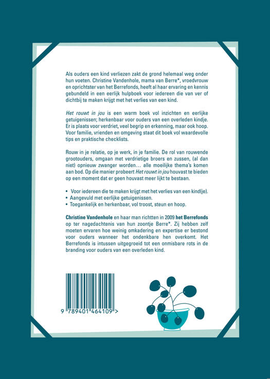 Het rouwt in jou is een warm boek vol inzichten en eerlijke getuigenissen; herkenbaar voor ouders van een overleden kindje. Er is plaats voor verdriet, veel begrip en erkenning, maar ook hoop. Voor familie, vrienden en omgeving staat dit boek vol waardevolle tips en praktische checklists.