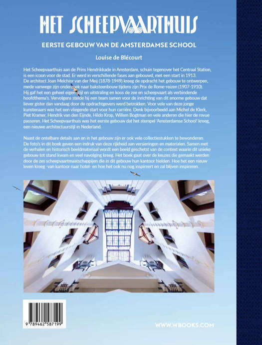 De architect Joan Melchior van der Meij (1878-1949) kreeg de opdracht het gebouw te ontwerpen. Hij gaf het een geheel eigen stijl en uitstraling. Vervolgens stelde hij een team samen voor de inrichting. Voor velen van deze jonge kunstenaars was het een vliegende start voor hun carrière: Michel de Klerk, Piet Kramer, Hendrik van den Eijnde, Hildo Krop, Willem Bogtman en vele anderen. Het Scheepvaarthuis was het eerste gebouw dat het stempel ‘Amsterdamse School’ kreeg. Nieuwe inzichten, nieuwe verhalen, nieuwe en oude beelden geven een inkijkje in de historische context en huidige gebruik van het gebouw als hotel. Een niet te missen stuk levend erfgoed dat blijft inspireren.