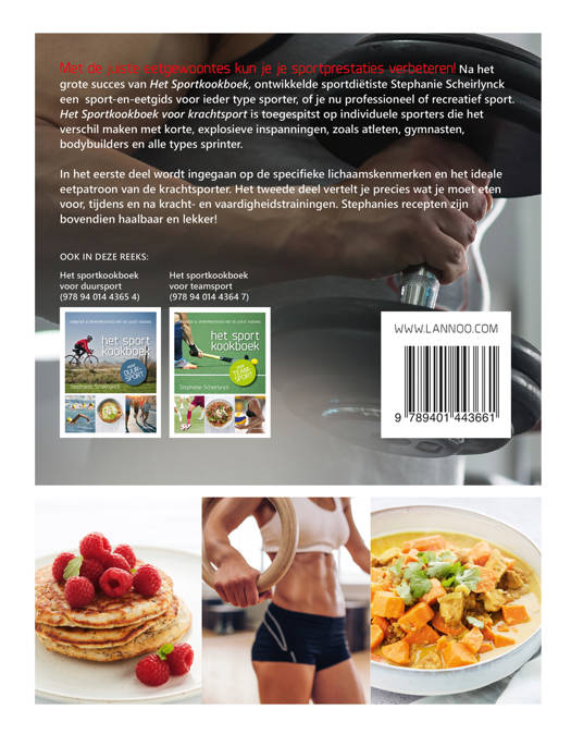Steeds meer mensen sporten en je voeding speelt een cruciale rol om goede resultaten te behalen. Bovendien verschilt je voedselbehoefte naargelang het soort sport dat je beoefent. Ben je een langeafstandsloper, zwemmer of een (recreatief) wielrenner? Speel je een team- of balsport, zoals voetbal of tennis? Of beoefen je een sport die heel wat kracht vergt (bv. fitness, sprinten of hoogspringen)? Elk type sport vraagt een ander type voeding. Wat eet je het beste op de verschillende trainingsdagen (bv. duurtraining of krachttraining)? Wat kies je als ontbijt, tussendoortje en warme of koude maaltijd? Sportdiëtiste Stephanie Scheirlynck begeleidt in haar praktijk diverse top- en recreatieve sporters en stelt telkens verschillende, eenvoudige recepten voor.