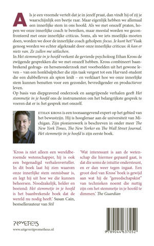 In Het stemmetje in je hoofd verkent de gevierde psycholoog Ethan Kross de zwijgende gesprekken die we met onszelf hebben. Kross combineert baanbrekend gedrags- en hersenonderzoek met voorbeelden uit het gewone leven – van een honkbalpitcher die zijn taak vergeet tot een Harvard-student die een dubbelleven als spion leidt – en verklaart hoe we onze innerlijke stem kunnen benutten voor een gezonder, bevredigender en productiever leven.