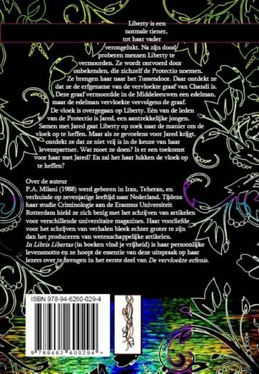 P.A. Milani (1988) werd geboren in Iran, Teheran, en verhuisde op zevenjarige leeftijd naar Nederland. Tijdens haar studie Criminologie aan de Erasmus Universiteit Rotterdam hield ze zich bezig met het schrijven van artikelen voor verschillende universitaire magazines. Haar voorliefde voor het schrijven van verhalen bleek echter groter te zijn dan het produceren van wetenschappelijke artikelen. In Libris Libertas (in boeken vind je vrijheid) is haar persoonlijke levensmotto en ze hoopt de essentie van deze uitspraak op haar lezers over te brengen in het eerste deel van De vervloekte erfenis.