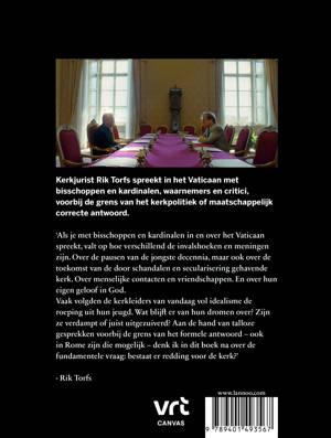 Kerkjurist Rik Torfs spreekt in het Vaticaan met bisschoppen en kardinalen, waarnemers en critici, voorbij de grens van het kerkpolitiek of maatschappelijk correcte antwoord. 'Als je met bisschoppen en kardinalen in en over het Vaticaan spreekt, valt op hoe verschillend de invalshoeken en meningen zijn. Over de pausen van de jongste decennia, maar ook over de toekomst van de door schandalen en secularisering gehavende kerk. Over menselijke contacten en vriendschappen. En over hun eigen geloof in God. Vaak volgden de kerkleiders van vandaag vol idealisme de roeping uit hun jeugd. Wat blijft er van hun dromen over? Zijn ze verdampt of juist uitgezuiverd? Aan de hand van talloze gesprekken voorbij de grens van het formele antwoord - ook in Rome zijn die mogelijk - denk ik in dit boek na over de fundamentele vraag: bestaat er redding voor de kerk?'