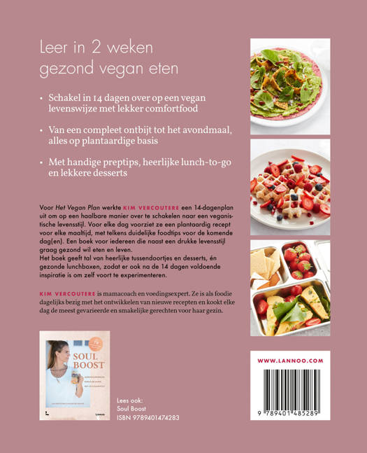 Voor Het Vegan Plan werkte Kim Vercoutere een 14-dagenplan uit om op een haalbare manier over te schakelen naar een veganistische levensstijl. Voor elke dag voorziet ze een plantaardig recept voor elke maaltijd, met telkens duidelijke foodtips voor de komende dag(en). Een boek voor iedereen die naast een drukke levensstijl graag gezond wil eten en bewegen.