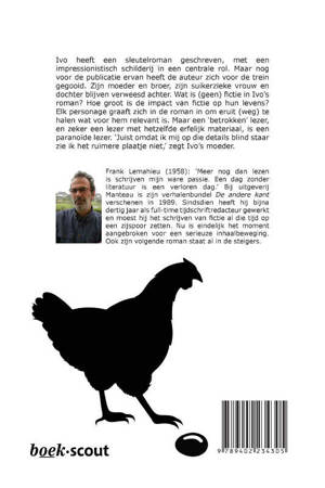 Ivo heeft een sleutelroman geschreven, met een impressionistisch schilderij in een centrale rol. Maar nog voor de publicatie ervan heeft de auteur zich voor de trein gegooid. Zijn moeder en broer, zijn suikerzieke vrouw en dochter blijven verweesd achter. Wat is (geen) fictie in Ivo’s roman? Hoe groot is de impact van fictie op hun levens? Elk personage graaft zich in de roman in om eruit (weg) te halen wat voor hem relevant is. Maar een ‘betrokken’ lezer, en zeker een lezer met hetzelfde erfelijk materiaal, is een paranoïde lezer. ‘Juist omdat ik mij op die details blind staar zie ik het ruimere plaatje niet,’ zegt Ivo’s moeder.