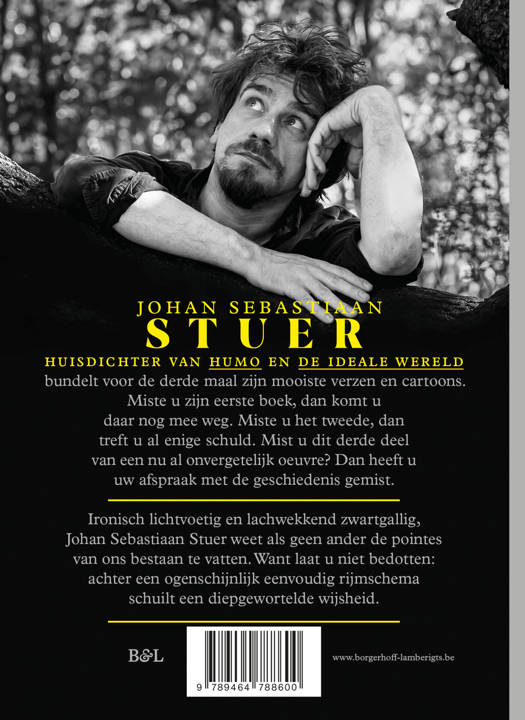 Johan Sebastiaan Stuer, bedenker van liederlijke versregels en slagvaardige cartoons, bundelt voor de derde maal de vruchten van zijn arbeid. Miste u zijn eerste bundel, daar komt u nog mee weg. Miste u de tweede, dan treft u al enige schuld. Mist u dit derde onderdeel in een nu al onvergetelijk oeuvre? Dan heeft u uw afspraak met de geschiedenis gemist.