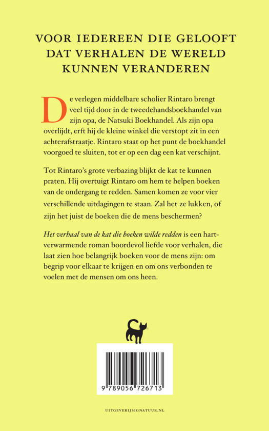 Tot Rintaro’s grote verbazing blijkt de kat te kunnen praten. Hij overtuigt Rintaro om hem te helpen boeken van de ondergang te redden. Samen komen ze voor vier verschillende uitdagingen te staan. Zal het ze lukken, of zijn het juist de boeken die de mens beschermen?