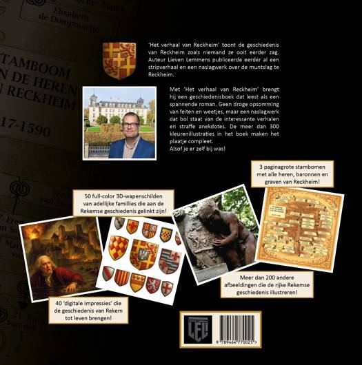 'Het verhaal van Reckheim' toont de geschiedenis van Reckheim zoals niemand ze ooit eerder zag. Auteur Lieven Lemmens publiceerde eerder al een stripverhaal en een naslagwerk over de muntslag te Reckheim. Met 'Het verhaal van Reckheim' brengt hij een geschiedenisboek dat leest als een spannende roman. Geen droge opsomming van feiten en weetjes, maar een naslagwerk dat bol staat van interessante verhalen en straffe anekdotes. De meer dan 300 kleurenillustraties in het boek maken het plaatje compleet. Het is alsof je er zelf bij was!