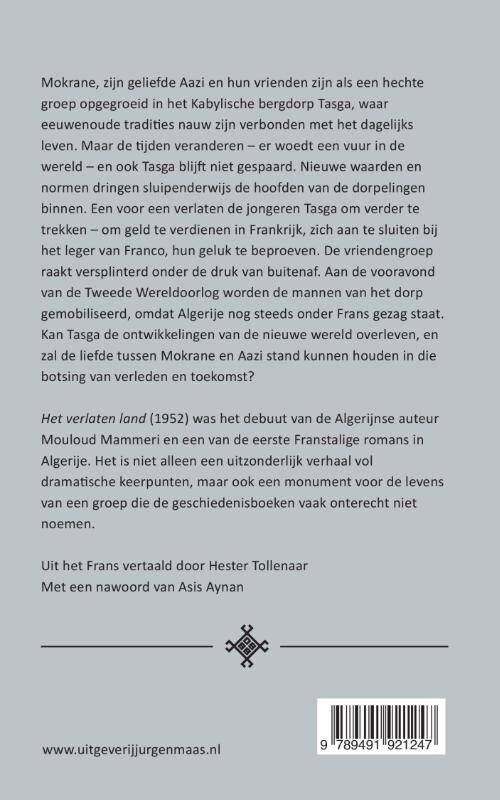 'Het verlaten land' (1952) was het debuut van de Algerijnse auteur Mouloud Mammeri en een van de eerste Franstalige romans in Algerije. Het is niet alleen een uitzonderlijk verhaal vol dramatische keerpunten, maar ook een monument voor de levens van een groep die de geschiedenisboeken vaak onterecht niet vermelden.