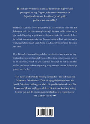 Mahmoud Darwish (1941-2008) was een van de meest gevierde en bewonderde dichters in de Arabische wereld. Hij werd geboren in het dorp al-Birwa in Galilea, Palestina. Zijn familie vluchtte in 1948 naar Libanon toen het Israëlische leger hun dorp verwoestte, en keerde een jaar later in het geheim terug naar de pas opgerichte staat Israël. Darwish werkte als journalist en redacteur in Haifa tot hij in 1970 naar Moskou vertrok om te studeren. Zijn ballingschap bracht hem naar Caïro, Beiroet, Tunis, Parijs, Amman en Ramallah, waar hij zich in 1995 vestigde. Hij publiceerde ongeveer dertig bundels met poëzie en proza, die in vijfendertig talen zijn vertaald, en richtte het prestigieuze literaire tijd schrift al-Karmel op, waar hij ook hoofdredacteur van was. Darwish ontving onder andere de Grote Prins Claus Prijs.