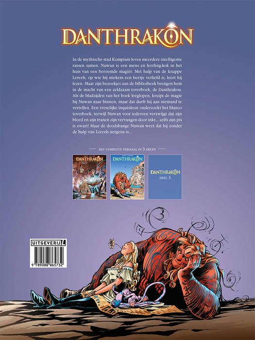 In de mythische stad Kompiam leven meerdere intelligente rassen samen. Nuwan is een mens en leerling-kok in het huis van een beroemde magiër. Met hulp van de knappe Lereeh, op wie hij stiekem een beetje verliefd is, leert hij lezen. Maar zijn bezoekjes aan de bibliotheek brengen hem in de macht van een zeldzaam toverboek, de Danthrakon. Als de bladzijden van het boek leeglopen, kruipt de magie bij Nuwan naar binnen, maar dat durft hij aan niemand te vertellen. Een vreselijke inquisiteur onderzoekt het blanco toverboek, terwijl Nuwan voor iedereen verzwijgt dat zijn bloed en zijn tranen zijn vervangen door inkt... zelfs zijn pis is zwart! Maar de doodsbange Nuwan weet dat hij zonder de hulp van Lereeh nergens is...