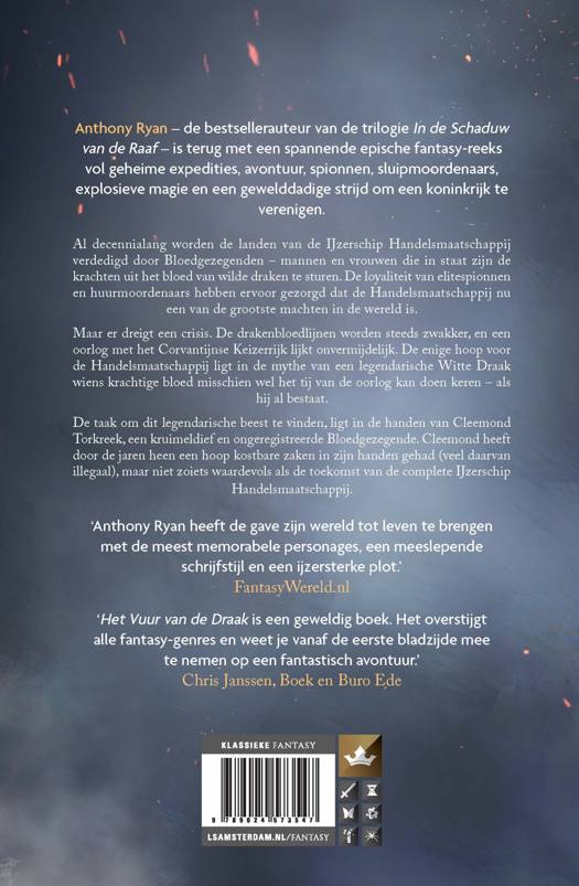 Anthony Ryan (1970) werd geboren in Schotland, maar bracht het grootste deel van zijn leven door in Londen. Na kort gewerkt te hebben als ambtenaar besloot hij schrijver te worden, en met ongekend succes: de trilogie In de Schaduw van de Raaf werd een internationale bestseller. Het Vuur van de Draak is het eerste deel van een nieuwe reeks.