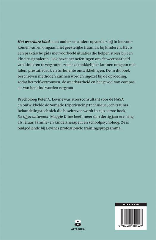 ‘Het weerbare kind’ van Peter A. Levine en Maggie Kline helpt ouders en andere opvoeders met het voorkomen van en omgaan met geestelijke trauma’s bij kinderen door middel van traumatherapie. Peter Levine is grondlegger van de lichaamsgerichte traumatherapie Somatic Experiencing (SE). Deze praktische gids staat vol oefeningen om de weerbaarheid van kinderen te vergroten. Ook bevat het boek voorbeeldsituaties die kunnen helpen stress bij kinderen te signaleren. Met behulp van ‘Het weerbare kind’ kunnen ouders hun kinderen leren beter om te gaan met falen, prestatiedruk en turbulente ontwikkelingen in hun leven.