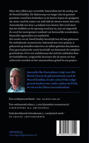 Meer dan vijftien jaar worstelde Amsterdam met de aanleg van de Noord/Zuidlijn. De lijdensweg was langer dan de grootste pessimist vooraf kon bedenken en de kosten liepen de spuigaten uit, maar vanaf de zomer van 2018 rijdt de nieuwe metro dan toch. Aanvankelijk zou deze 1,4 miljard euro kosten. Het werd meer dan het dubbele en de opening werd jaar in, jaar uit uitgesteld. Zo werd het metroproject symbool van bestuurlijk wensdenken, financiële tegenvallers en wanbeleid. Het wonder van de Noord/Zuidlijn beschrijft hoe dit kon gebeuren. De onthullende reconstructie, bekroond met twee prijzen, is gebaseerd op tientallen interviews en talloze geheime documenten. Deze geactualiseerde versie beschrijft van binnenuit de complete geschiedenis. Over een stadsbestuur dat zich liet uitkleden door het bedrijfsleven, welgestelde bewoners die de metro uit hun achtertuin weerden en het onaantastbare geloof in een project.