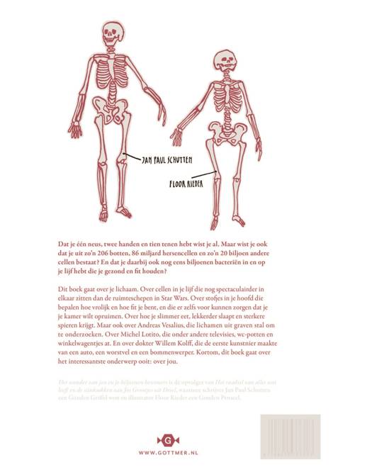 'Het wonder van jou en je biljoenen bewoners' is het tweede deel van de grensverleggende non-fictietrilogie van Jan Paul Schutten en Floor Rieder. Het eerste deel, 'Het raadsel van alles wat leeft', over de evolutie, werd bekroond met de Gouden Griffel én het Gouden Penseel, en het derde deel in de reeks, 'Het mysterie van niks en oneindig veel snot', gaat over het ontstaan van het heelal. Alle drie de boeken zijn luxe uitgevoerd met goud-op-snee-bladzijden en een linnen rug.