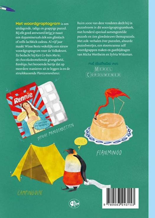 Ruim 2000 van deze vondsten deelt hij in puzzelvorm in het woordgraptogramboek, met honderd speciaal samengestelde puzzels en twaalf gloednieuwe themapuzzels. In het boek ook veel leuke verhalen óver puzzelen, absurde puzzelweetjes en een stoomcursus zelf woordgrappen maken. Met prachtige en hilarische illustraties van Merel Corduwener en gastbijdragen van Micha Wertheim en Sylvia Witteman. Niet zomaar een puzzelboek dus. Ideaal voor op vakantie en als cadeau.