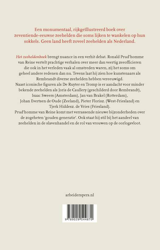 In Het zeeheldenboek schrijft Ronald Prud’homme van Reine over de veertig ‘populairste’ Nederlandse zeehelden uit de zeventiende eeuw. Naast bekende figuren als De Ruyter en Tromp is er ook aandacht voor onbekende zeehelden als Joris de Caullery, geschilderd door Rembrandt, Isaac Sweers (Amsterdam), Jan van Brakel (Rotterdam) en Johan Evertsen de Oude (Zeeland. Prud’homme van Reine komt met verrassende nieuwe bijzonderheden over de zogeheten ‘gouden generatie’. Ook staat hij stil bij het aandeel van zeehelden in de slavenhandel en de rol van vrouwen op de oorlogsvloot.