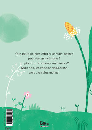 C’est le grand jour ! Socrate fête son anniversaire avec tous ses amis. Mais que vont-ils bien lui offrir ? Que cachent tous ces paquets ?Une histoire d’amitié teintée d’humour entre un mille-pattes et de multiples animaux.