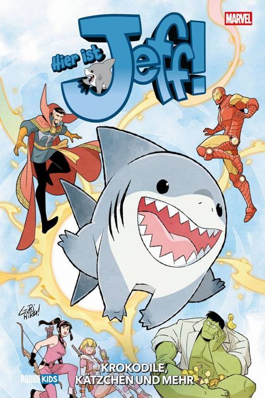 Wir präsentieren Jeff ... den allseits beliebten, unschuldigen, genialen und niedlichen Landhai! Wieder einmal erlebt der Marvel Rivals-Star allerhand lustige und kuriose Abenteuer - und das in bester Gesellschaft! Die Reise führt ihn dieses Mal mit seinen Tierfreunden Chewie, Cosmo und Lockjaw sogar ins Weltall?! Neben den üblichen Gastauftritten der X-Men, Avengers, Spider-Man und anderen Helden, erwarten euch dieses Mal auch Storys mit Alligator-Loki und ganz vielen Kätzchen. Inszeniert von Kelly Thompson (Captain Marvel), Gurihiru (Spider-Man & Venom: Geballte Ladung), Gustavo Duarte (Bizarro), Jason Loo (Spider-Boy), Alyssa Wong (Deadpool) und anderen.