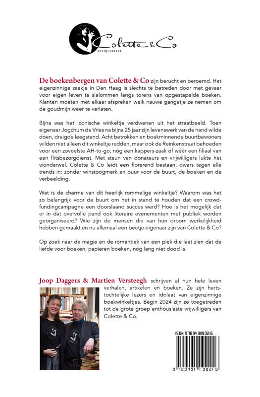 Bijna was het iconische winkeltje verdwenen uit het straatbeeld. Toen eigenaar Jogchum de Vries na bijna 25 jaar zijn levenswerk van de hand wilde doen, dreigde leegstand. Acht betrokken en boekminnende buurtbewoners wilden niet alleen dit winkeltje redden, maar ook de Reinkenstraat behoeden voor een zoveelste AH-to-go, nóg een kappers-zaak of wéér een filiaal van een flitsbezorgdienst. Met steun van donateurs en vrijwilligers lukte het wonderwel. Colette & Co leidt een florerend bestaan, dwars tegen alle trends in: zonder winstoogmerk en puur voor de buurt, de boeken en de verbeelding.