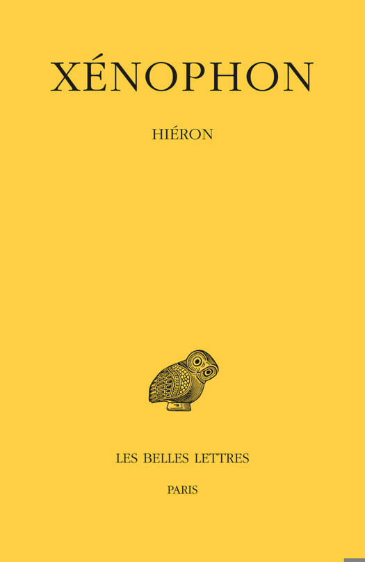 Dans le Hieron, qui se presente comme un dialogue socratique, le tyran Hieron et le poete Simonide se demandent laquelle, de la vie du tyran ou de celle du simple particulier, est la plus agreable et la plus enviable. L'une des principales difficultes que souleve ce dialogue est la question de savoir si Simonide peut etre considere comme un porte-parole et un substitut de Socrate. En ce qui concerne l'etablissement du texte, on attendait une nouvelle edition critique depuis 1933. Cette edition se fonde pour la premiere fois sur un examen complet de la tradition manuscrite, et utilise six temoins primaires dont quatre pour la premiere fois. La tradition indirecte a ete elle aussi recueillie et utilisee plus largement que dans les editions anterieures.