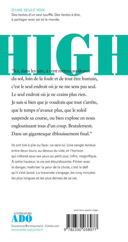 Ils ont tiré à pile ou face : ce sera lui. Une sangle tendue entre deux tours, au-dessus du vide, et l'horizon qui s'étend sous ses yeux au petit jour, infini, magnifique. À cette hauteur, la vie est étourdissante. Flirter avec le danger, maîtriser la peur de la chute, c'est le défi qu'il s'est lancé. La traversée s'engage, les cinq minutes les plus longues et les plus denses de sa vie.