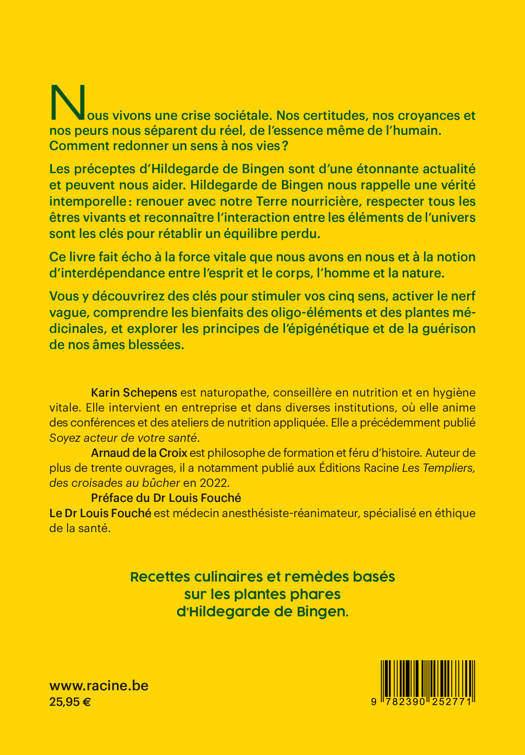 Les préceptes d'Hildegarde de Bingen sont d'une étonnante actualité et peuvent nous aider. Hildegarde de Bingen nous rappelle une vérité intemporelle : renouer avec notre Terre nourricière, respecter tous les êtres vivants et reconnaître l'interaction entre les éléments de l'univers sont les clés pour rétablir un équilibre perdu.