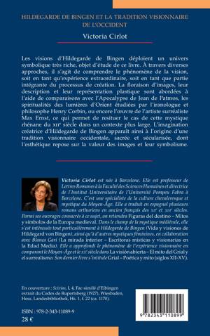 Les visions d'Hildegarde de Bingen déploient un univers symbolique très riche. A travers diverses approches, il s'agit de comprendre le phénomène de la vision, soit en tant qu'expérience extraordinaire, soit en tant que partie intégrante du processus de création. La floraison d'images, leur description et leur représentation plastique sont abordées à l'aide de comparaisons avec l'Apocalypse de Jean de Patmos, les spiritualités des lumières d'Orient étudiées par l'iranologue et philosophe Henry Corbin, ou encore l'oeuvre de l'artiste surréaliste Max Ernst, resituant le cas de cette mystique Rhenane du XIIe siècle dans un contexte plus large.
