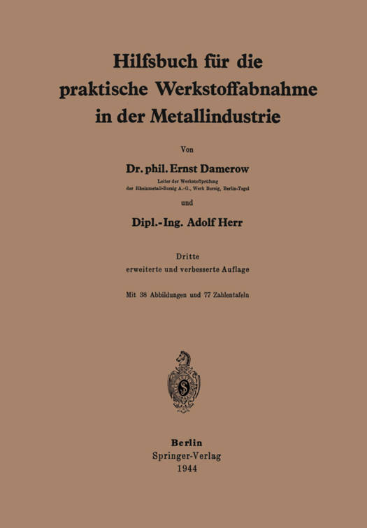 Dieser Buchtitel ist Teil des Digitalisierungsprojekts Springer Book Archives mit Publikationen, die seit den Anfängen des Verlags von 1842 erschienen sind. Der Verlag stellt mit diesem Archiv Quellen für die historische wie auch die disziplingeschichtliche Forschung zur Verfügung, die jeweils im historischen Kontext betrachtet werden müssen. Dieser Titel erschien in der Zeit vor 1945 und wird daher in seiner zeittypischen politisch-ideologischen Ausrichtung vom Verlag nicht beworben.