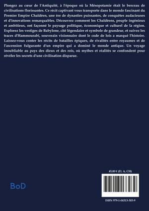 Plongez au coeur de l'Antiquité, à l'époque où la Mésopotamie était le berceau de civilisations florissantes. Ce récit captivant vous transporte dans le monde fascinant du Premier Empire Chaldéen, une ère de dynasties puissantes, de conquêtes audacieuses et d'innovations remarquables. Découvrez comment les Chaldéens, peuple ingénieux et ambitieux, ont façonné le paysage politique, économique et culturel de la région. Explorez les vestiges de Babylone, cité légendaire et symbole de grandeur, et suivez les traces d'Hammourabi, souverain visionnaire dont le code de lois a marqué l'histoire. Laissez-vous conter les récits de batailles épiques, de rivalités entre royaumes et de l'ascension fulgurante d'un empire qui a dominé le monde antique. Un voyage inoubliable au pays des dieux et des rois, où mythes et réalités se confondent pour révéler les secrets d'une civilisation disparue.