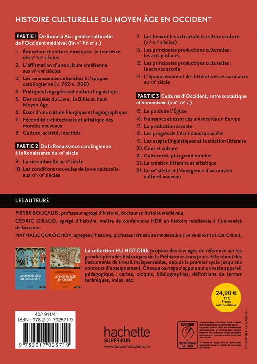9. La vie culturelle au Xe siècle / 10. Les conditions nouvelles de la vie culturelle aux XIe-XIIe siècles / 11. Les lieux et les acteurs de la culture scolaire (XIe-XIIe siècles) / 12. Les principales productions culturelles : les arts profanes / 13. Les principales productions culturelles : la science sacrée / 14. L’épanouissement des littératures vernaculaires au XIIe siècle