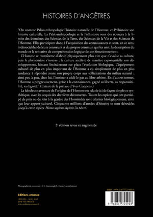 La fabuleuse aventure de l'homme est ici relatée de façon simple et synthétique, avec les acquis des dernières découvertes. Toutes les espèces qui ont participé de près ou de loin à la genèse des hominidés sont décrites biologiquement, ainsi que leur apport culturel. Cinquante millions d'années d'histoire se sont déroulées jusqu'à cette espèce «Homo sapiens sapiens», la nôtre.