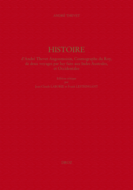 Venant après Les Singularitez de la France Antarctique (1557) et La Cosmographie universelle (1575), l'Histoire de deux voyages, dont le manuscrit est conservé à la BnF sous la cote Fr. 15454, est la dernière version, la plus ample et la plus complète, du Brésil d'André Thevet, cosmographe des rois de France. Thevet fait bien plus que livrer son expérience personnelle, en vérité restreinte à l'hiver 1555-1556, lorsqu'il était l'aumônier du chevalier de Villegagnon en baie de Rio de Janeiro. Il livre un fonds documentaire unique constitué pour l'essentiel au temps de la colonie française et recueilli auprès des "truchements" installés dans le pays, complété ensuite sur le rapport des marins normands, bretons et saintongeais qui fréquentaient le littoral du Nordeste brésilien dans les dernières décennies du XVIe siècle. Texte capital pour la connaissance des tribus perdues du littoral sud-américain, les "Toupinambaoults" de Léry et les Cannibales de Montaigne, l'Histoire de deux voyages, où ont puisé tour à tour les anthropologues Alfred Métraux, Claude Lévi-Strauss et Hélène Clastres, n'avait jusqu'ici fait l'objet que d'éditions très partielles, la dernière, par Suzanne Lussagnet, remontant à 1953. Cette première édition complète inclut les variantes d'une version préparatoire connue sous le nom de Second Voyage. Elle reconstitue en outre les liens complexes que l'Histoire de deux voyages entretient avec le Grand Insulaire et Pilotage, l'autre grand inédit de Thevet, conservé lui aussi à Paris. Comme le Grand Insulaire, élaboré entre 1584 et 1588, l'Histoire de deux voyages tend à l'émiettement des Isolari, ces atlas d'îles qui fleurirent à la Renaissance et à l'âge classique.