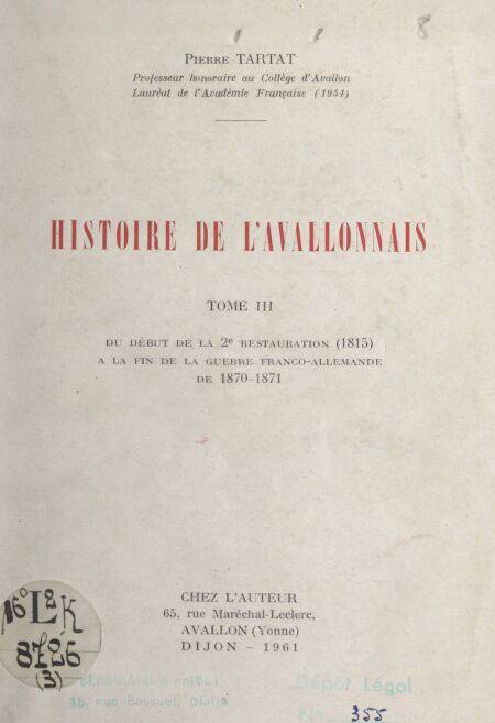 4. Histoire de l'Avallonnais (3). Du début de la 2e Restauration (1815) à la fin de la guerre franco-allemande de 1870-1871