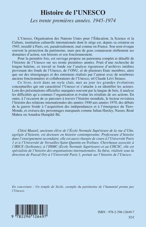 Ce panorama de l'histoire de l'Unesco sur ses trente premières années est fondé sur l'analyse d'archives inédites de l'Unesco, de l'ONU, et de plusieurs Etats membres, ainsi que sur des témoignages et entretiens, dont celui de Claude Lévi Strauss. Il met au jour ses grandes évolutions conceptuelles, en identifie les acteurs, analyse ses difficultés, et évalue ses résultats. L'histoire des relations internationale, des débuts de la Guerre froide à l'acquisition des indépendances et à l'émergence du Tiers-monde, est analysée.
