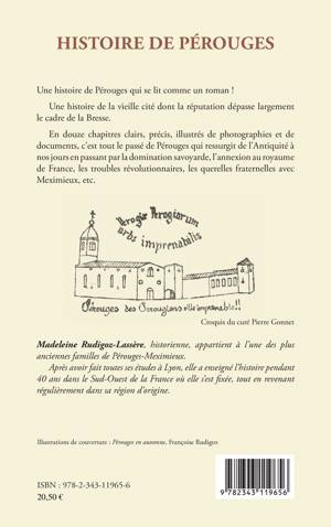 Une histoire de Pérouges qui se lit comme un roman ! Une histoire de la vieille cité dont la réputation dépasse largement le cadre de la Bresse. En douze chapitres clairs, précis illsutrés de photographies et de documents, c'est tout le passé de Pérouges qui ressurgit de l'Antiquité à nos jours en passant par la domination savoyarde, l'annexion au royaume de France, les troubles révolutionnaires, les querelles fraternelles avec Meximieux etc.